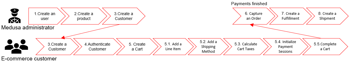 | { "info": { "_postman_id": "d0447766-3c8d-4b70-bf6c-ca66061249f8", "name": "medusa", "schema": "https://schema.getpostman.com/json/collection/v2.1.0/collection.json" }, "item": [ { "name": "1.Authenticate a User", "request": { "method": "POST", "header": [], "body": { "mode": "raw", "raw": "{\n \"email\": \"zwm136200@gmail.com\",\n \"password\": \"zaq12wsx\"\n}\n", "options": { "raw": { "language": "json" } } }, "url": { "raw": "localhost:9000/admin/auth", "host": [ "localhost" ], "port": "9000", "path": [ "admin", "auth" ] } }, "response": [] }, { "name": "2.Create product", "request": { "method": "POST", "header": [], "body": { "mode": "raw", "raw": "{\n\t\"title\": \"nft-04-26-test-01\",\n\t\"subtitle\": \"\",\n\t\"description\": \"this is a test\",\n\t\"is_giftcard\": false,\n\t\"discountable\": false,\n\t\"images\": [],\n\t\"thumbnail\": \"\",\n\t\"handle\": \"test-nft-product-04-27\",\n\t\"weight\": 10,\n\t\"length\": 20,\n\t\"height\": 5,\n\t\"width\": 10,\n\t\"origin_country\": \"\",\n\t\"mid_code\": \"\",\n\t\"material\": \"\"\n}", "options": { "raw": { "language": "json" } } }, "url": { "raw": "localhost:9000/admin/products", "host": [ "localhost" ], "port": "9000", "path": [ "admin", "products" ] } }, "response": [] }, { "name": "3.Create a Customer-admin", "request": { "method": "POST", "header": [], "body": { "mode": "raw", "raw": "{\n \"email\": \"test1@gmail.com\",\n \"password\": \"test1\",\n \"first_name\": \"firstname\",\n \"last_name\": \"lastname\"\n}", "options": { "raw": { "language": "json" } } }, "url": { "raw": "localhost:9000/admin/customers", "host": [ "localhost" ], "port": "9000", "path": [ "admin", "customers" ] } }, "response": [] }, { "name": "3.Create a Customer-store", "request": { "method": "POST", "header": [], "body": { "mode": "raw", "raw": "{\n \"email\": \"test2@gmail.com\",\n \"password\": \"test2\",\n \"first_name\": \"firstname2\",\n \"last_name\": \"lastname2\"\n}", "options": { "raw": { "language": "json" } } }, "url": { "raw": "localhost:9000/store/customers", "host": [ "localhost" ], "port": "9000", "path": [ "store", "customers" ] } }, "response": [] }, { "name": "4.Auth a customer", "request": { "method": "POST", "header": [], "body": { "mode": "raw", "raw": "{\n \"email\": \"test1@gmail.com\",\n \"password\": \"test1\"\n}", "options": { "raw": { "language": "json" } } }, "url": { "raw": "localhost:9000/store/auth", "host": [ "localhost" ], "port": "9000", "path": [ "store", "auth" ] } }, "response": [] }, { "name": "4.1 get regions", "request": { "method": "GET", "header": [], "url": { "raw": "localhost:9000/store/regions", "host": [ "localhost" ], "port": "9000", "path": [ "store", "regions" ] } }, "response": [] }, { "name": "5.Create a cart", "request": { "method": "POST", "header": [], "body": { "mode": "raw", "raw": "{\n \"region_id\": \"reg_01G1FPXMTTD926PVCYW9WT9QSN\",\n \"country_code\": \"cn\"\n}", "options": { "raw": { "language": "json" } } }, "url": { "raw": "localhost:9000/store/carts", "host": [ "localhost" ], "port": "9000", "path": [ "store", "carts" ] } }, "response": [] }, { "name": "5.1 Add a item", "request": { "method": "POST", "header": [], "body": { "mode": "raw", "raw": "{\n \"variant_id\": \"variant_01G1G2029D4ASNYWGEX9TCSVTY\",\n \"quantity\": 1\n}", "options": { "raw": { "language": "json" } } }, "url": { "raw": "localhost:9000/store/carts/cart_01G1G1R5D2JCA2CP0HV55JHEMJ/line-items", "host": [ "localhost" ], "port": "9000", "path": [ "store", "carts", "cart_01G1G1R5D2JCA2CP0HV55JHEMJ", "line-items" ] } }, "response": [] }, { "name": "5.2Add a Shipping Method", "request": { "method": "POST", "header": [], "body": { "mode": "raw", "raw": "{\n \"option_id\": \"so_01G1FZ76DY5XVRT64639856AR0\"\n}", "options": { "raw": { "language": "json" } } }, "url": { "raw": "" } }, "response": [] }, { "name": "5.3Calculate Cart Taxes", "request": { "method": "POST", "header": [], "body": { "mode": "raw", "raw": "", "options": { "raw": { "language": "json" } } }, "url": { "raw": "localhost:9000/store/carts/cart_01G1G1R5D2JCA2CP0HV55JHEMJ/taxes", "host": [ "localhost" ], "port": "9000", "path": [ "store", "carts", "cart_01G1G1R5D2JCA2CP0HV55JHEMJ", "taxes" ] } }, "response": [] }, { "name": "5.4Initialize Payment Sessions", "request": { "method": "POST", "header": [], "body": { "mode": "raw", "raw": "", "options": { "raw": { "language": "json" } } }, "url": { "raw": "localhost:9000/store/carts/cart_01G1G1R5D2JCA2CP0HV55JHEMJ/payment-sessions", "host": [ "localhost" ], "port": "9000", "path": [ "store", "carts", "cart_01G1G1R5D2JCA2CP0HV55JHEMJ", "payment-sessions" ] } }, "response": [] }, { "name": "5.5Complete a Cart - create an order", "request": { "method": "POST", "header": [], "body": { "mode": "raw", "raw": "", "options": { "raw": { "language": "json" } } }, "url": { "raw": "localhost:9000/store/carts/cart_01G1G1R5D2JCA2CP0HV55JHEMJ/complete", "host": [ "localhost" ], "port": "9000", "path": [ "store", "carts", "cart_01G1G1R5D2JCA2CP0HV55JHEMJ", "complete" ] } }, "response": [] }, { "name": "6.Capture an Order - payment finished", "request": { "method": "POST", "header": [], "body": { "mode": "raw", "raw": "", "options": { "raw": { "language": "json" } } }, "url": { "raw": "localhost:9000/admin/orders/order_01G1G6DRGQQX5QBF7RQY1JYWWQ/capture", "host": [ "localhost" ], "port": "9000", "path": [ "admin", "orders", "order_01G1G6DRGQQX5QBF7RQY1JYWWQ", "capture" ] } }, "response": [] }, { "name": "7.Create a Fulfillment - order fulfilled", "request": { "method": "POST", "header": [], "body": { "mode": "raw", "raw": "{\n \"items\": [\n {\n \"item_id\": \"item_01G1G21Z2G7VDXYZ51AZM53YNN\",\n \"quantity\": 1\n }\n ],\n \"metadata\": {},\n \"no_notification\": false\n}", "options": { "raw": { "language": "json" } } }, "url": { "raw": "localhost:9000/admin/orders/order_01G1G6DRGQQX5QBF7RQY1JYWWQ/fulfillment", "host": [ "localhost" ], "port": "9000", "path": [ "admin", "orders", "order_01G1G6DRGQQX5QBF7RQY1JYWWQ", "fulfillment" ] } },