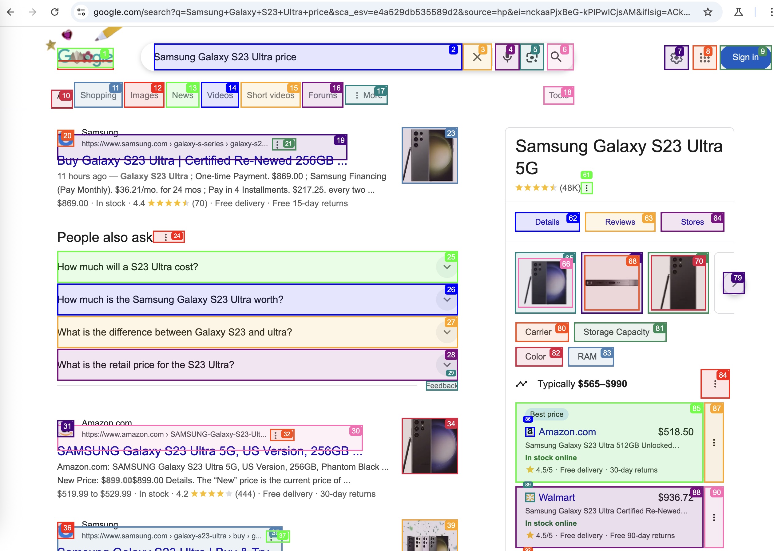 Demo 2 prompt - Compare the price of iPhone 15 Pro Max and Samsung Galaxy S23 Ultra.
