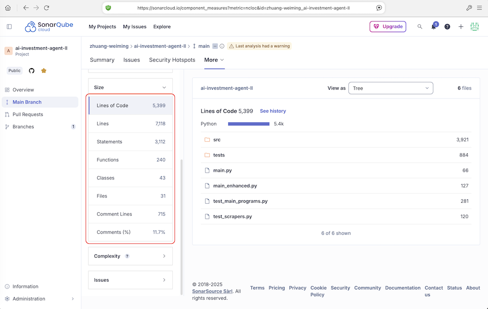 - Lines of Code(代码行数): 所有物理代码行的总数(包括空行和注释)。这是一个最基础的规模指标。