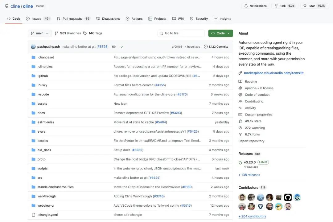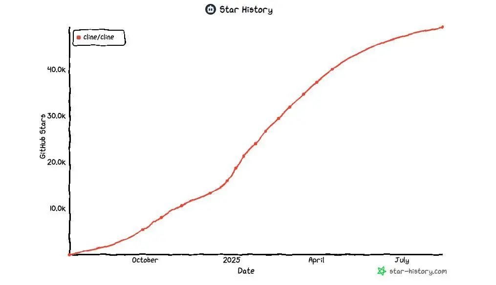这种理念带来了惊人的增长:仅用一年时间,Cline 就从一次黑客马拉松的创意成长为拥有 270 万开发者社区的明星产品,并在 GitHub 上收获 49.1k 颗 star。